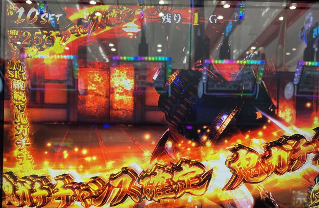 ちなみに鬼ガチチャンスとは、1ゲーム完結型のチャンスゾーンで、レア小役またはリーチ目を引くことができれば、継続率80%以上のATに当選できるみたいです。