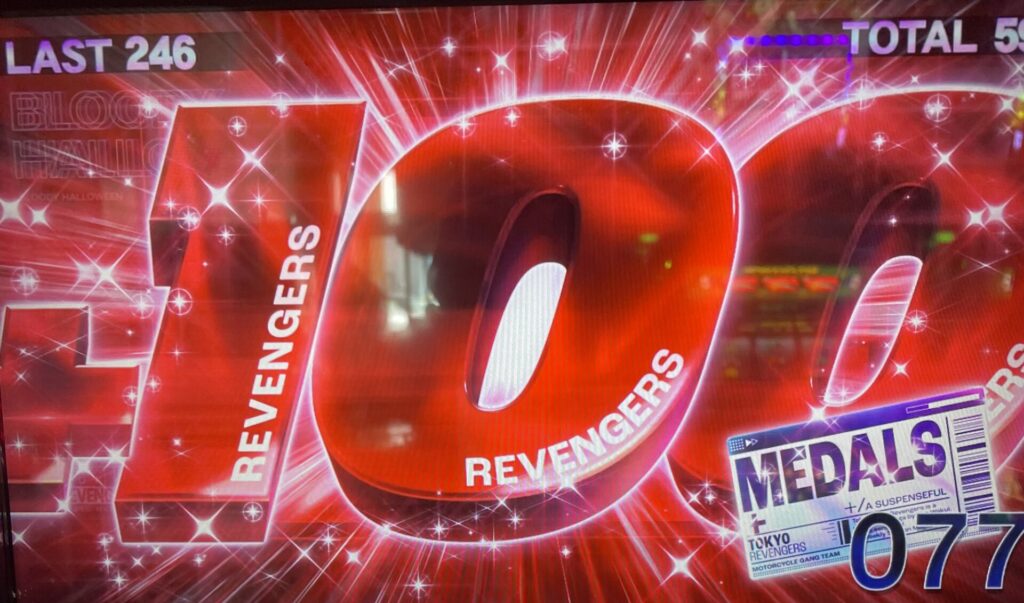 このATの東卍アタックで、リベンジチャンス獲得チャンス2連続がありましたが、2択を連続で外し、たいした800枚ほど獲得し終了。